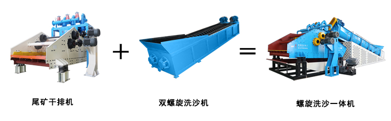 雙螺旋篩洗一體機,結構設置合理,采用尾礦干排篩配合雙螺旋洗砂機設置,形成整體結構,篩分和清洗結合在一起,易于生產加工,生產周期短,占地面積小,處理能力大,同時采用渣漿泵和旋流器連通在一起,形成水體的回流,節約水體消耗,能夠很好的進行篩分和清洗,使篩洗行業得到發展。