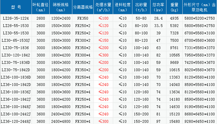 2、工作流程:砂水混合物進入清洗箱,由葉輪分離機進行分離,然后進入下層脫水篩做脫水處理,清洗箱溢流出的廢水(含大量細砂、泥漿、粉塵等雜質),經真空高壓泵輸送到高壓分離器中,然后離心分J濃縮后的細沙,經沉沙嘴排入脫水篩上層,清洗箱內的廢水、泥、粉塵、雜質等,通過高壓分離器溢流口,排入高位返水箱后排出,上層出成品料粗砂,下層出成品料細砂,或粗、細砂混出(可根據要求做調整)。